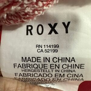 Keywords: Roxy hoodie, pink sweatshirt, sparkle top, tribal graphic, boho style, casual wear, pullover, women's medium, v neck hoodie, sun design, festival fashion, loungewear, everyday comfort