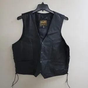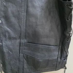 Black Leather Biker Vest Sz 48