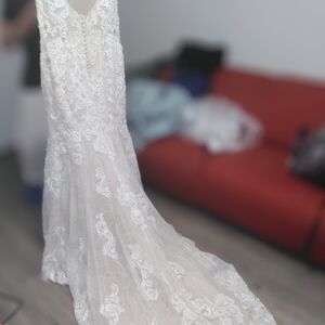 This elegant cream lace wedding dress is perfect for your special day. The intricate lace design adds a touch of sophistication and romance.
