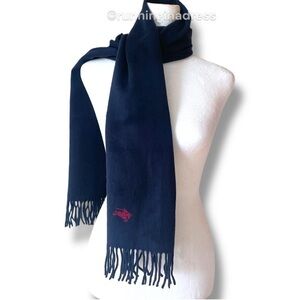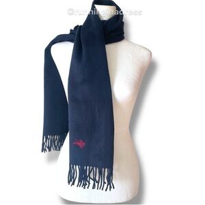 Vintage Cashmere Scarf In Navy Blue With Red Equestrian Knight Design Logo. Details: