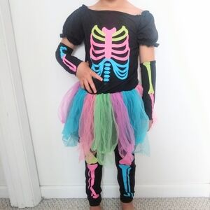 Girls skeleton tulle Halloween rainbow costume 4 piece