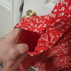 Vibrant red dress with delicate white floral print. Elegant and stylish for any event.