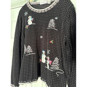 Alfred Dunner Black Snowman Sweater Polka Dots Sz XL