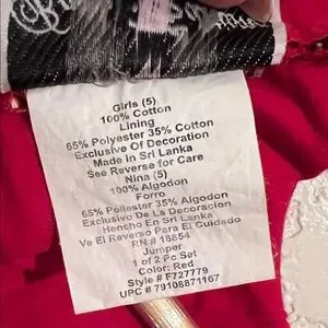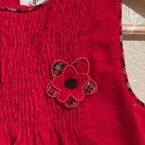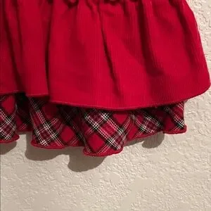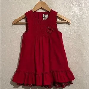 Adorable red corduroy dress with ruffle plaid hem. Features a cute floral accent. Great condition, no flaws, the inside tag does say piece 1 of 2, this only includes the dress.