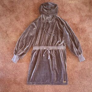 Like New Calvin Klein Velour Hooded Sweatshirt Mini Dress Brown L