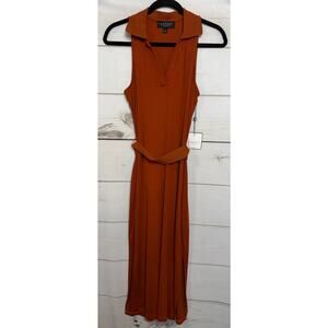 Laundry by Shelli Segal Dress Sleeveless Collar Rust Belt Ribbed Knit Chic 4