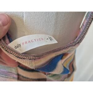 The Anthropologie Daily Practice Women's Colorblock Knit Sweater Dress in size Large is a stylish and versatile piece perfect for casual occasions. This knee-length dress features a flattering round neckline, sleeveless design, and pullover closure for easy wear. Made from a blend of viscose and cotton knit fabric, this multicolor dress offers stretch for comfort and a flattering fit. The Daily Practice brand ensures quality and style in this chic sweater dress that is a must-have for any woman's wardrobe.