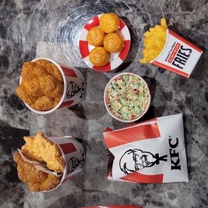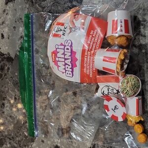 Zuru Mini Brands KFC collectible set featuring mini food items. Includes mini fried chicken and sides. Perfect for collectors.