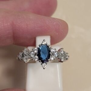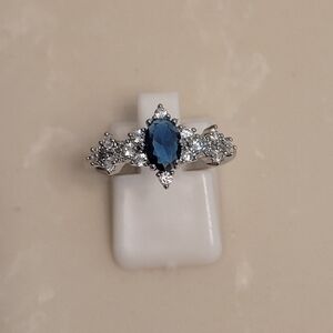 Silver CZ and Sapphire Marquis Ring Size 8