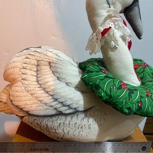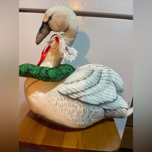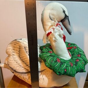 VTG 80s Soft Elegant Swan Holiday Decor with Green Wreath weighted bottom