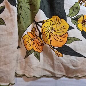 Absolutely gorgeous, Farm Rio for Anthropologie Sleevless V-neck A Line floral maxi dress. In very good pre-loved condition, only flaw is no beads at the end of the tassels. 55% Linen, lined, zipper on the side. 54" long. Measurements are approximate and shown in pics.