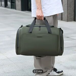 Green Foldable Travel Bag, Portable Travel Bag, Portable Short Trip Bag With Shoe Compartment, Large Capacity Hand-held Storage Box, Waterproof, Adjustable Shoulder Strap, Zipper Closure, Suitable For Fitness, Sports And Outdoor Travel