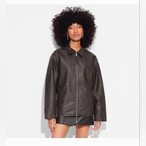 Wild Fable Women's Faux Leather Oversized Bomber Jacket Brown