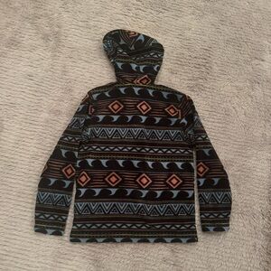Stylish O'Neill quarter snap fleece with pocket with a unique black blue orange and green tribal aztec native wave pattern. Worn once. Perfect for casual wear. Size M fits more like loose XS- fitted S