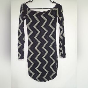 Lovely Day Black and Green Chevron Long Sleeve Dress Size S