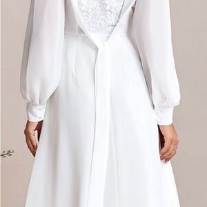 Chic white maxi dress by JJs House. Features elegant flowing sleeves. Perfect for any occasion. wedding, bridal, lace, modest, white, fancy, nice, formal. NEW WITH TAGS, STILL IN ORIGINAL PACKAGING