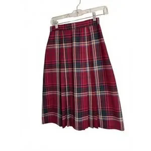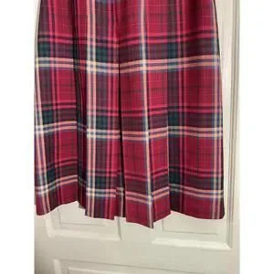 Classic pleated skirt with a red plaid pattern.