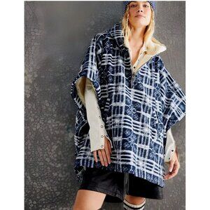 FREE PEOPLE PONCHO XS/S "MISS YOU" Hooded Jacket Winter PLAID BLUE NWOT