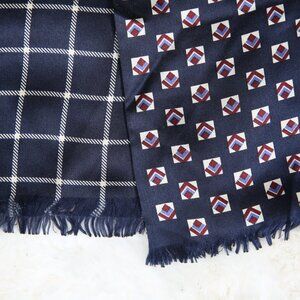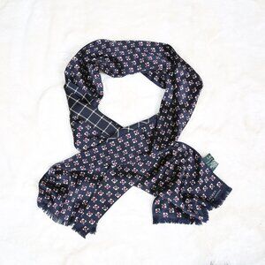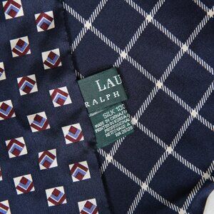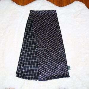 LAUREN RALPH LAUREN 100% Silk Navy Blue Foulard Print Scarf - Reversible Motif