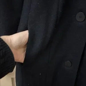 Discover timeless elegance with this black long coat, enhanced by a plush genuine fur trim. Perfect for sophisticated style.