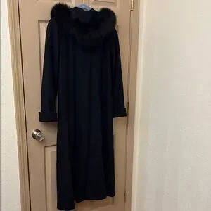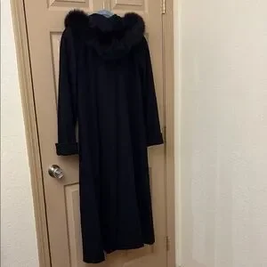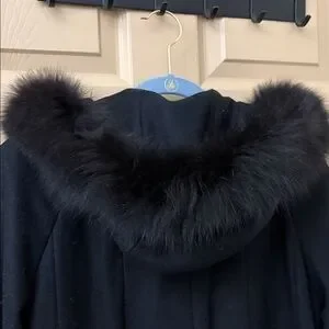 Vintage JULIA KLIEN Black Wool Fox Fur-Trimmed Hood Women's Coat
