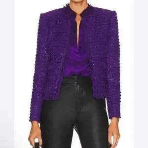 L'Agence Angelina Purple Tweed Open Blazer Jacket