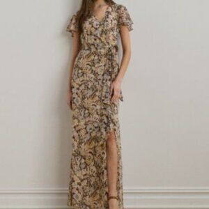 Lauren Ralph Lauren Womens Floral Belted Flutter Dress Broun Size 6 NEW