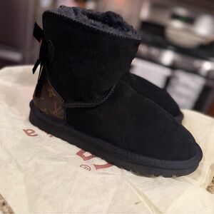 Unlisted designer like Black and Brown Boots with Ribbon Details