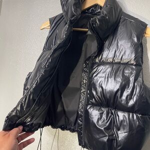 Stay warm and stylish with this sleek black puffer vest. Perfect for layering, it offers both comfort and fashion for any occasion.