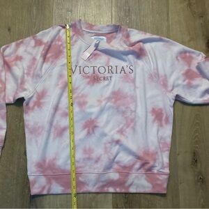 Cozy tie-dye sweatshirt. Features Victoria's Secret logo. Perfect for casual wear.