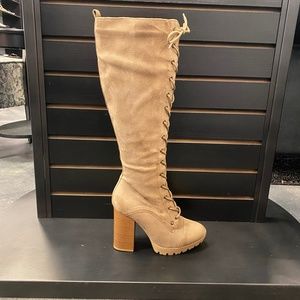 These cute boots feature a beautiful suede-like material, fully laced front, zippered side, and a 2.75 inch heel.