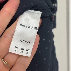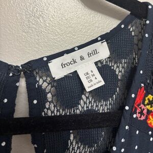 Frock & Frill Embroidered Katerina Midi Dress in Navy Polka Dot - Size US 4