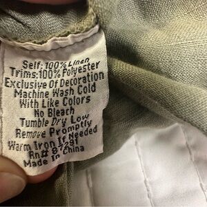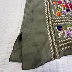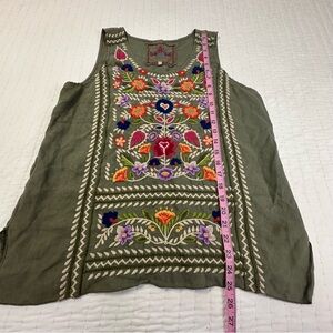 Johnny Was Embroidered 100% Linen Olive Green Sleeveless Blouse
