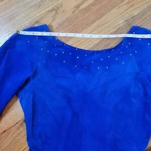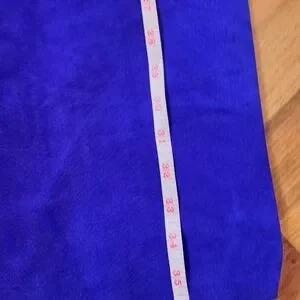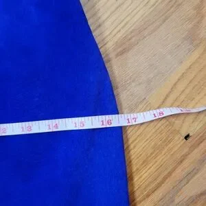 Vintage 1980s Firenze of Santa Barbara electric blue suede dress with rhinestone and a deep V back. Size M. Some of the folds in the back need to be pressed back into shape.