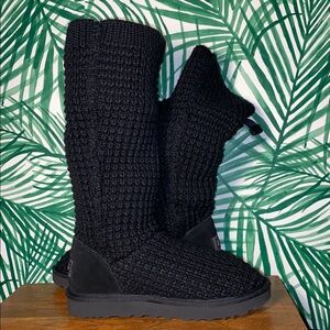 UGG Solene Black Crochet Sweater Boots Women’s 7 1112478