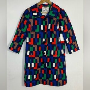 Milly of New York Silk Blend Colorful Block Pattern Trench Coat/Dress