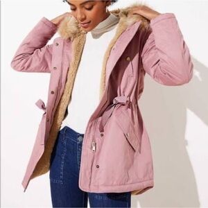 LOFT Pink Fur-Trimmed Puffer Jacket size XS