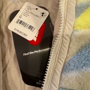 Cozy teddy jacket with geometric pattern. Features a zip front and high collar. Perfect for chilly days.