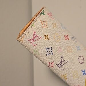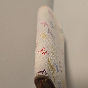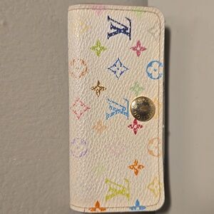 Elegant Louis Vuitton key holder with a vibrant multicolor monogram on white. Ideal for a stylish touch.