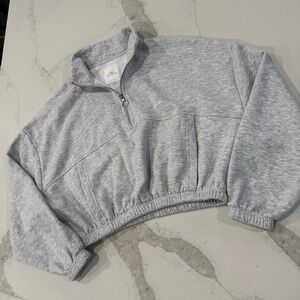 Lazy Sunday Half Zipped Cropped Sweatshirt Women’s Large Heather Gray Athleisure