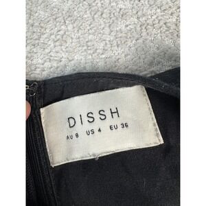 Dissh Dress Womens 4 Black Linen Maxi Flutter Sleeve V Neck Lined Summer