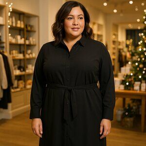 Worthington Black Button-Front Shirt Dress – XXL – Minimalist & Chic