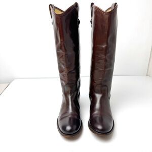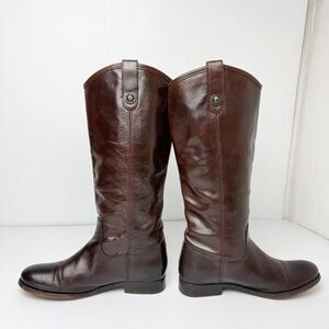 Frye Leather Tall Pull-on Boots Melissa Button Redwood Brown 7.5