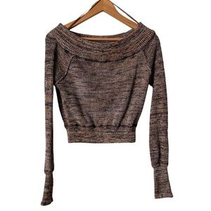 Free People Sugar Rush Off The Shoulder Cropped Sweater, Black Combo, Small