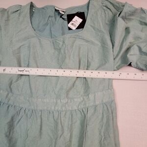 Ava & Viv Boho Dress Teal Tiered Balloon 3/4 Sleeve Cotton Knee Length Size 1X