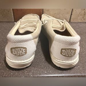 Experience comfort with Hey Dude's cream loafers. Ideal for casual outings.