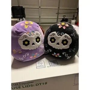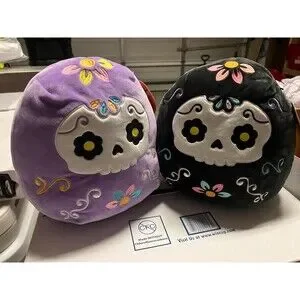 Celebrate the spirit of Día de los Muertos with these vibrant Squishmallows plush toys featuring Delfina and Daria! Designed in festive sugar skull style, each character showcases colorful embroidered details, soft cuddly texture, and signature Squishmallows charm. Perfect for Halloween décor, seasonal gifting, or year-round snuggles, these limited edition plushies bring joyful personality and collectible appeal to any Squishmallows lineup.