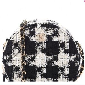 CHANEL | Clutch | Tweed Round Clutch with Gold & Black Leather Chain