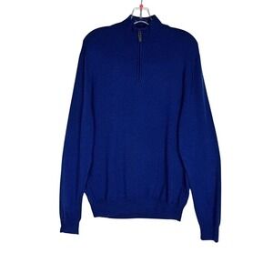 Jos A Bank Traveler Blue 1/4 Zip Pullover Sweater Mens XL 100% Merino Wool.