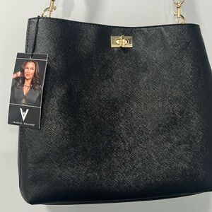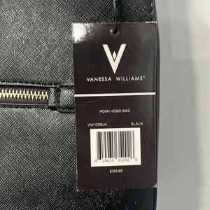 Vanessa Williams Posh Hobo Bag, Black Faux Saffiano Leather NWT